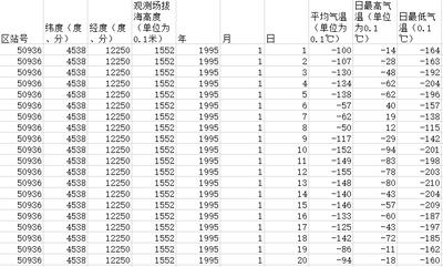 吉林省29个气象站点1995年至2018年气温逐日数据,具体包括平均气温、日最高气温、日最低气温、平均气温质量控制码、日最高气温质量控制码、日最低气温质量控制码