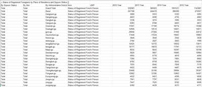 数据集是韩国外国人统计数据,时间范围是1992_2011、2012_2013、2012_2017、2000_2017、2006_2015及2008_2015年。