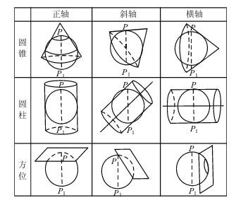 地图投影的种类繁多,如图所示。不同的投影方式具有不同的形态和变形特征,根据不同的使用目的,可以采用不同的投影方式,一种投影对一种目的是有用的,而对另一种目的则可能不适合。地图投影的选取决定于地图的应用及其比例尺大小,在臬面数字环境下,用户可对每一个新创建文件进行投影设置和选择。椭球面是一个凸起的、不可展平的曲面,将曲面上的元素(如角度、距离、图形)投影到平面上,就会和原来的角度、距离、图形呈现投影变形。投影变形一般分为长度变形、角度变形和面积变形三种,投影的结果必然产生变形。尽管地图投影的变形不可避免,但可以根据耑要来掌握和控制它,可以使某种变形为零,也可以使全部变形减小到某一适当程度。在实际工作中,可以根据地图的用途和性质、制图区域的大小、制图区域的形状,以及地理位置和特殊要求,选择适当的投影。