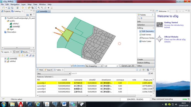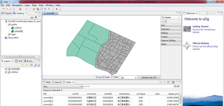 WebGIS开源方案中空间数据的编辑是通过uDig查看和编辑postgresql中的shp数据。