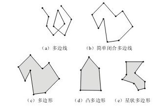 线状实体包括线段、边界、链、弧段、M络等,其中多边线如图(a)、(b)所示。