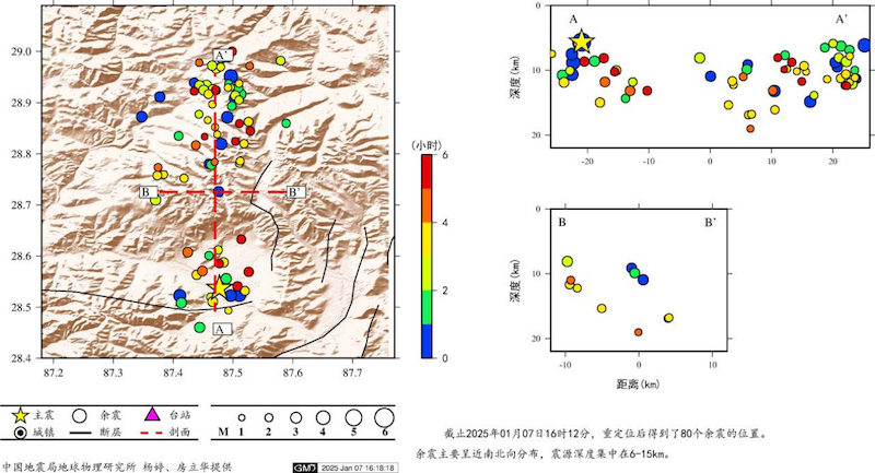 3)《2021年青海玛多MS7.4地震序列精定位研究》:玛多地震发生在青藏高原中部,是在印度板块向北推挤、青藏高原地块隆升、巴颜喀拉次级地块向东挤出背景下的又一次大地震。此次玛多地震发生在北部边界东段,该地区前一次7级以上强震是发生在东昆仑断裂的1937年花石峡7.5级地震,此次强震的发生在空间上填补了这一区域7.0级以上地震的空白。根据地震与巴颜喀拉块体边界带的位置关系,可以看出玛多地震相对位置更靠近板块内部,这与近30年来地震主要发生在边界带上有一定差异。此外,余震区海拔高,地质构造研究程度低,不同地质学家根据卫星影像等资料解译的断层分布差异较大。此次玛多地震的发震断层是哪一条断裂?破裂面几何形态如何?余震活动有哪些特点?本文利用中国地震台网中心2021年5月22日至30日的震相观测报告,采用双差定位方法,对此次地震序列进行重新定位,探讨此次地震的发震构造和序列特征。