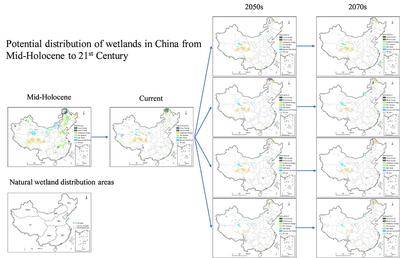 湿地分布数据集包含了当前、21世纪代表性的浓度路径(RCP)释放情况(RCP2.6、4.5、6和8.5)和中全新世(约6000年前)的GeoTIFF格式的观测和预测湿地数据,其空间分辨率为1km。