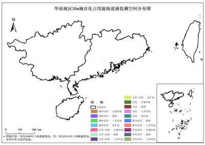 数据产生方法:以Landsat遥感影像作为主要数据源,结合多元辅助信息,应用面向对象的遥感图像分类方法进行人工表面与湿地信息提取。主要流程包括:多尺度影像分割、影像对象信息提取、分类精度评价等,确保一级类精度在90%以上。通过以上流程提取华南地区2000年至2010年期间的城市化占用湿地的空间数据,对其进行最终的编辑、转换、分析处理、制图输出,存储为栅格格式。
